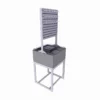 Hazır giyim mağazalarında ürün açmak ve müşteriye yardımcı olmak için servis masası olarak kullanılır. Ayaklar metal olup fırın boyalıdır. Üst tablası 8mm camdır. Altında aşap mdflamçekmeceli ünitesi vardır. Stand tekerleklidir.